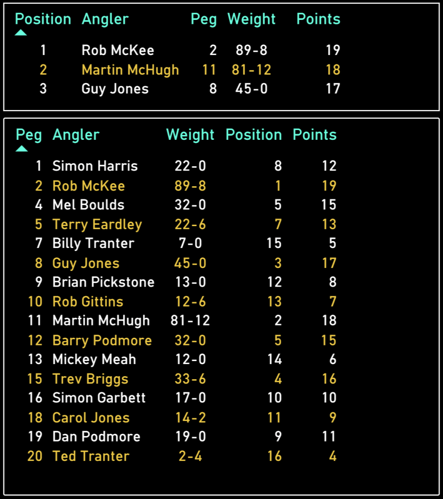 | 2 | Martin McHugh | 11 | 81lb 12oz |