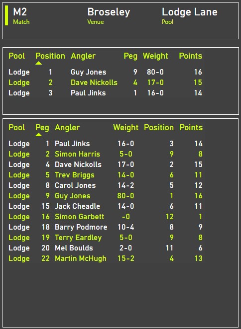 Once again, the weights from Lodge Lane were disappointing everyone really struggled as the dark shapes that cruised in the middle of the pool were intent on not feeding.