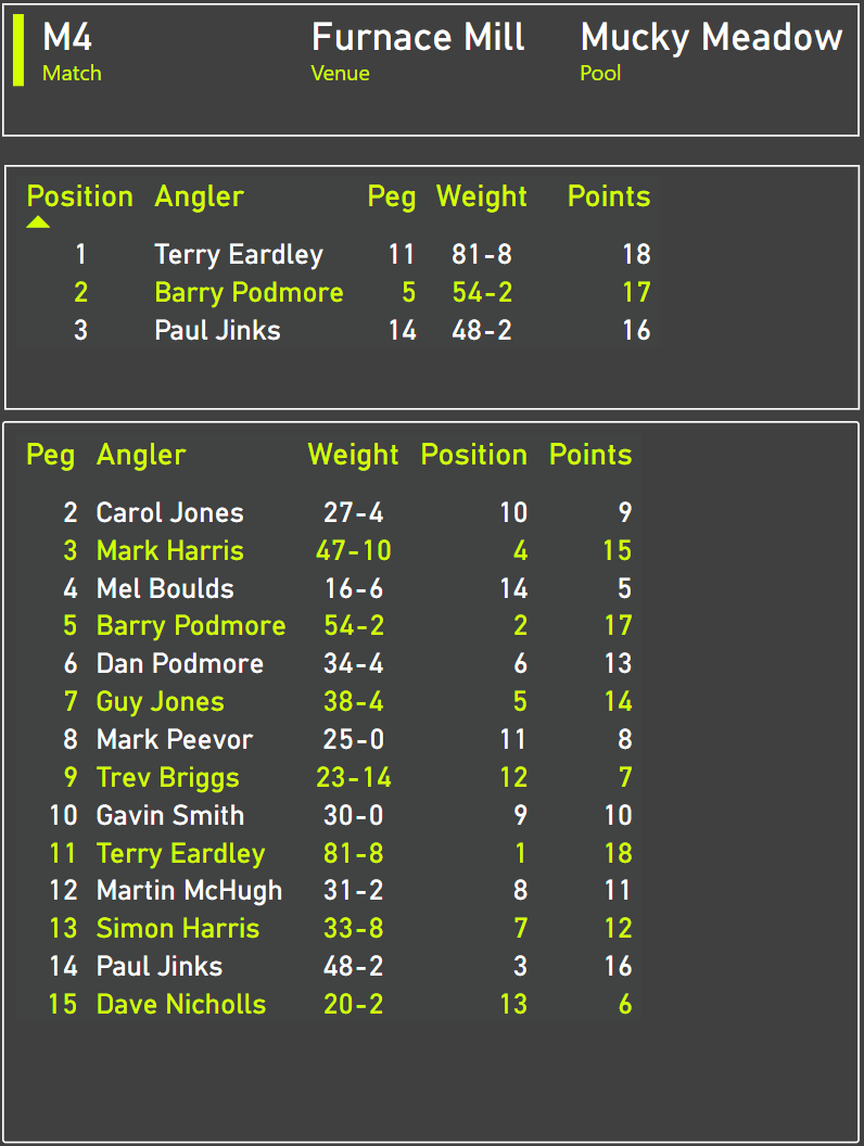 Mark Jones was our guest angler for this match and he weighed in 27-0 from peg 1.