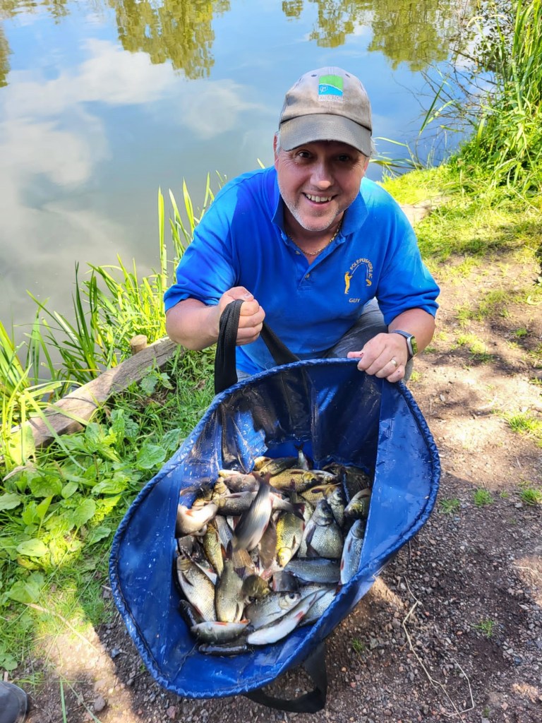 Guy said his plan was to go for the bream that live in the peg he was drawn on. But the bream had decided to vacate the peg leaving Guy to re-think and change to attacking the silvers that were feeding up in the water. Which culminated in this impressive net of fish.