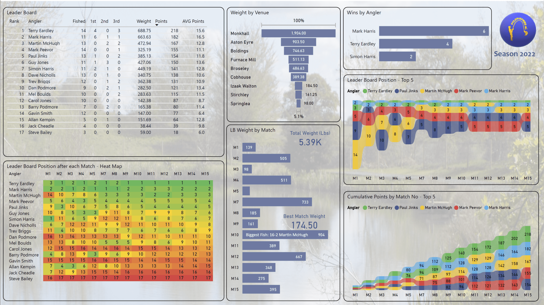 A complete round-up of this season’s results, with weights, performances and the final leader board for 2022. Amazing set of statistics for the top 5 anglers this season as they have jostled for the top positions throughout the year. Mark Harris had a fantastic hattrick of wins to secure second place in the leader board.