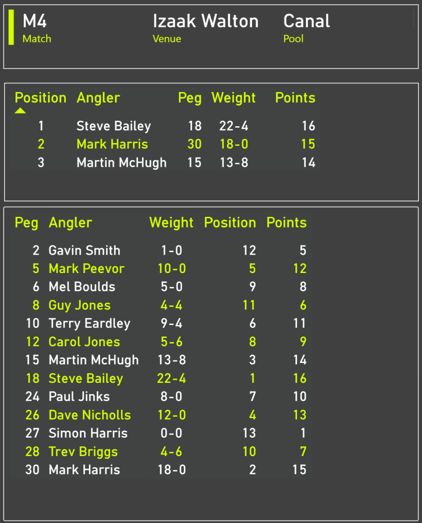 Izaak Walton Canal Fishing Match Report