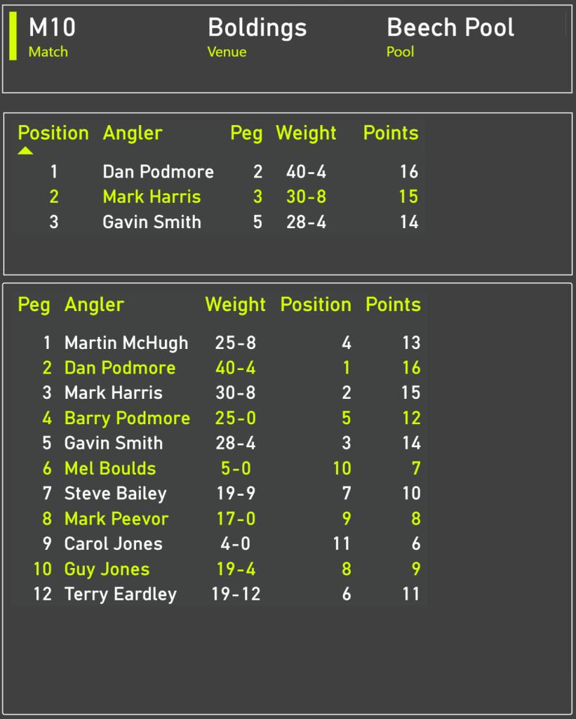 Weights haven’t been that good on this pool in recent days with only 40lb winning the match earlier in the week. There were plenty of fish showing though, the question was were they going to feed?