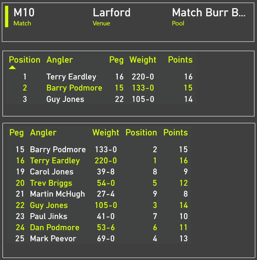 The tenth match of the season took place on the Burr Bank pegs at Larford – Match Pool, where anglers enjoyed a warm, sunny day with temperatures peaking at 21°C—perfect summer fishing conditions.