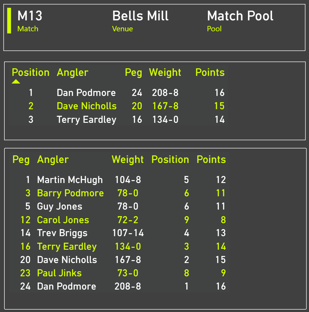 🎣 Match 13 Report – Bells Mill (Match pool)