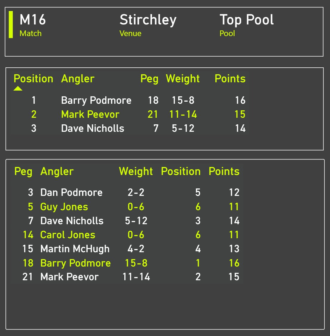 🎣 Match 16 Report – Stirchley (Top pool)