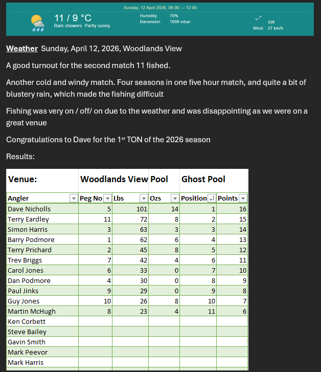 Woodlands View Ghost Pool – Match 2 Posted on 13/04/202613/04/2026 by Barry Podmore Share this:TweetMore Email a link to a friend (Opens in new window) Email Like Loading... Related
