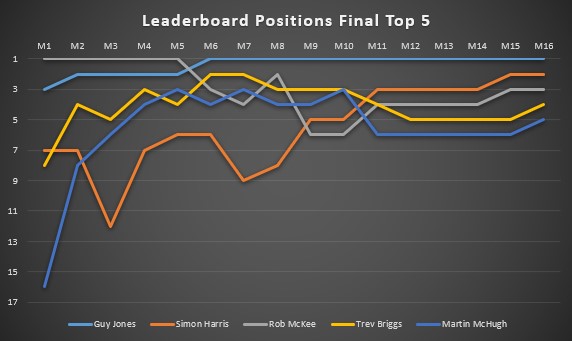 After Match 6 there was no catching Guy. Although Simon had an impressive run-in.