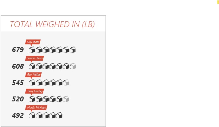 Total weighed in by each angler, shown as a percentage of the grand total.